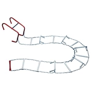 This 3 story escape ladder ensures emergency preparedness for home or business fires, earthquakes and other emergency situations. It is always a good idea to include portable chain ladders in your fire escape emergency plan. This 20 foot ladder without plastic sleeves on the chains is a strong, light weight portable escape ladder with industrial strength hooks that fit over most window sills so you can safely escape a fire. Quick Escape ladders come in 12 foot and 20 foot lengths to escape from second or third story windows. All include ladder stand offs for extra stability. Features: 18 Gauge Steel ; 2/0 Double Loop Chain. Rungs tested to 450 pounds per rung. Steel, slip-resistant rungs are heavy duty and grooved for added safety. Displaces 25 lbs. per sq. ft. Supports over 1000 pounds. Easy to install standoffs (for every rung) help to stabilize ladder during descent. Step width: 12" wide. Bright red handles fit standard window sills. Bi-lingual (English ; Spanish) vinyl instruction card affixed permanently to last ladder rung. Ladder Deployment: 1. Hook handles in place to window sill. 2. Lower one rung at a time out the open window (Setting up the fire escape ladder takes only enough strength to lift the hooks over the window sill). Warranty: 10 year limited manufacturer's warranty. This product is made in USA.